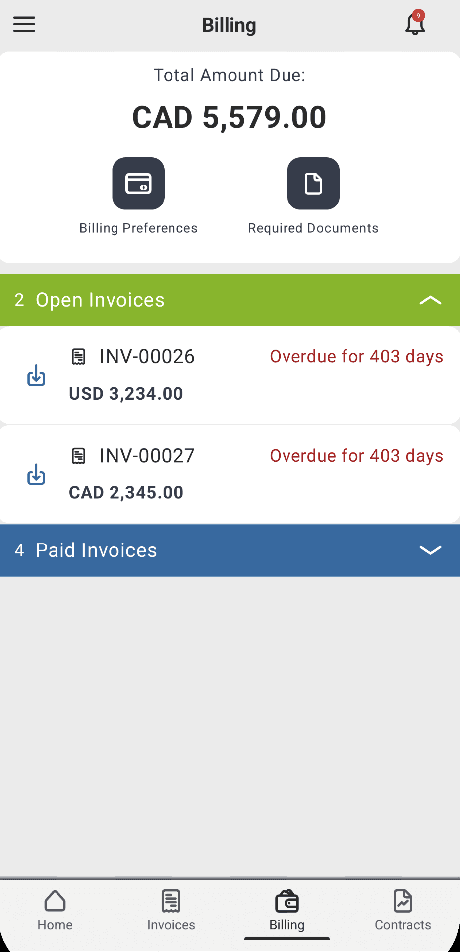 Instead of hiding document uploads at login, I integrated them into the billing flow with badge notifications. When documents are needed, users see a clear indicator. We also integrated a third-party invoice creation system here.